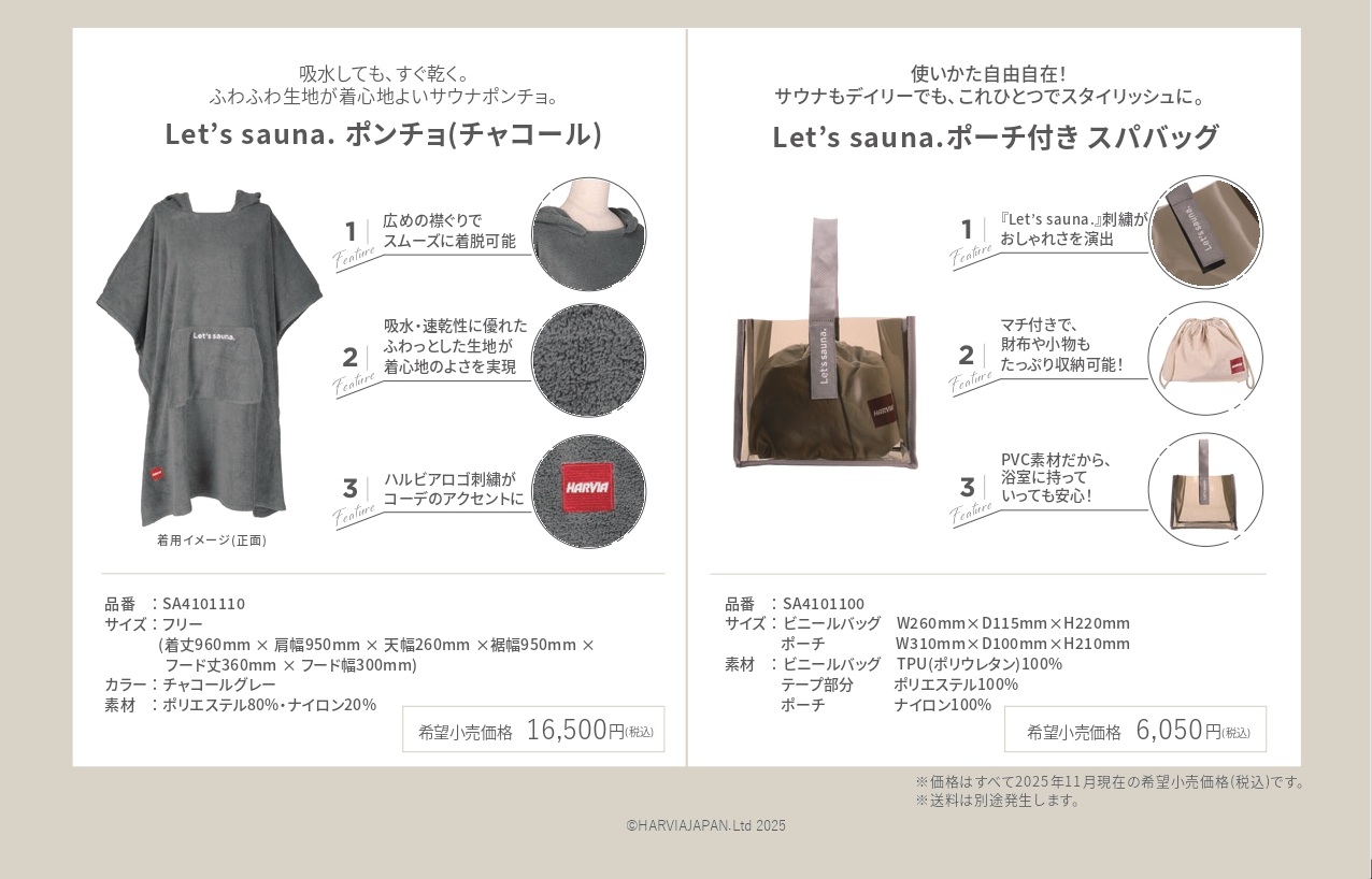 ハルビア オフィシャルサウナグッズ「Let's Sauna. ポンチョ/ポーチ付きスパバッグ」発売