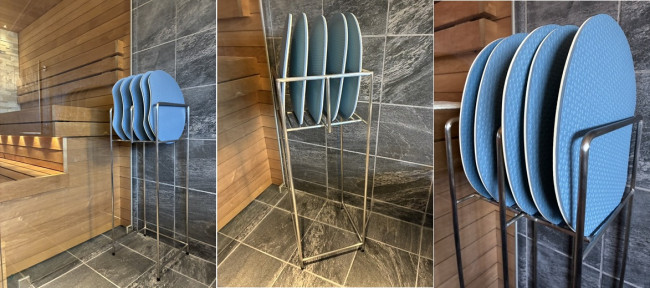 優雅なサウナルームの側に。ステンレスサウナマットスタンド「A1」発売