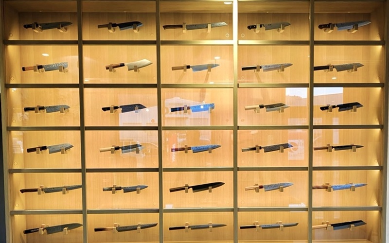 包丁や鋏を中心としたコーナー。国内の厳選した刃物を見て、手に取る事ができます。